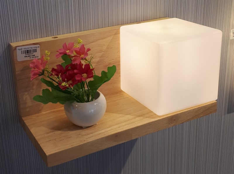 Đèn tường LED gỗ + thủy tinh hộp vuông dài phải
