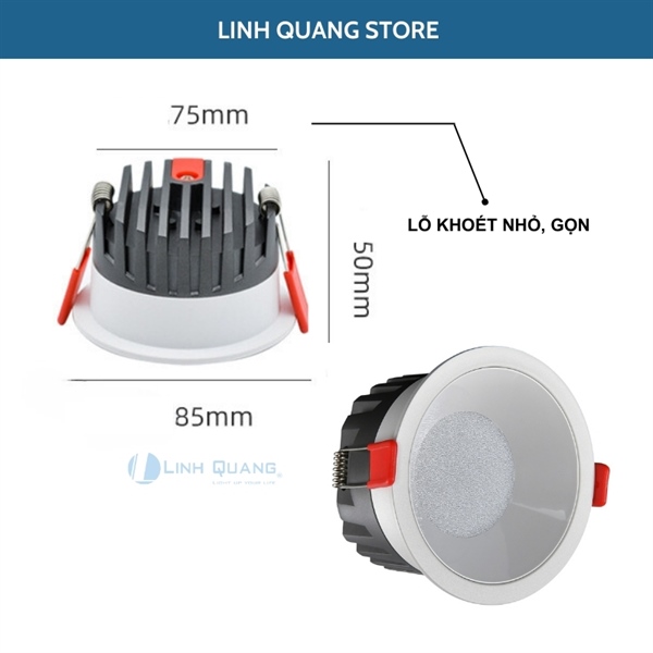 Đèn led âm trần downlight SM4, lỗ khoét 75mm, vỏ trắng chóa trắng - Cái
