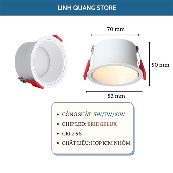 • Màu sắc vỏ: Vỏ trắng lòng trắng. Ánh sáng downlight góc sáng 60 độ, không gây chói mắt.