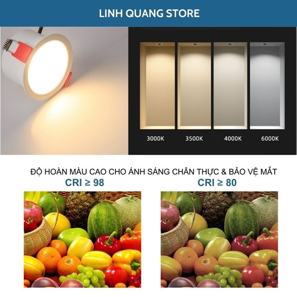• Độ hoàn màu cao: RA>98 110-120Lm/w