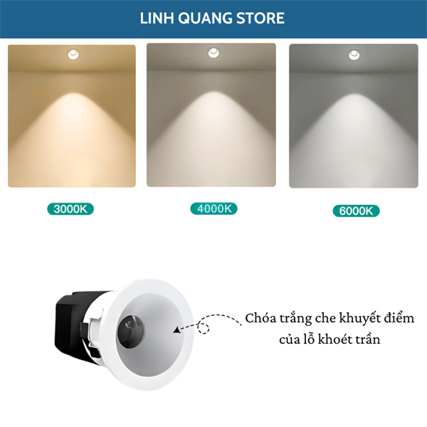 • Nhiệt độ màu: 3000K, 4000K, 6000K, 3 chế độ màu