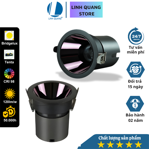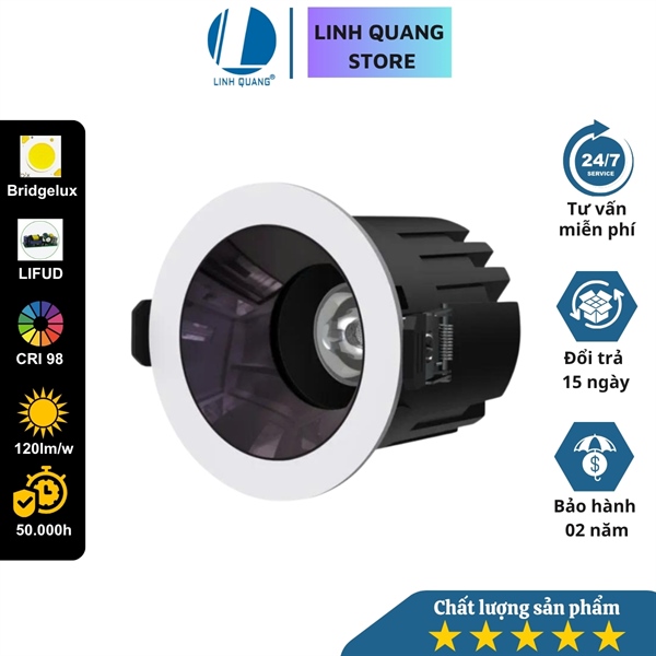 Đèn LED âm trần Spotlight SM13 Viền trắng chóa đen, chống chói cao cấp, lỗ khoét 32mm