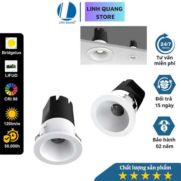 Đèn Led Spotlight âm trần Lux 5w,lỗ khoét 70mm, vỏ trắng